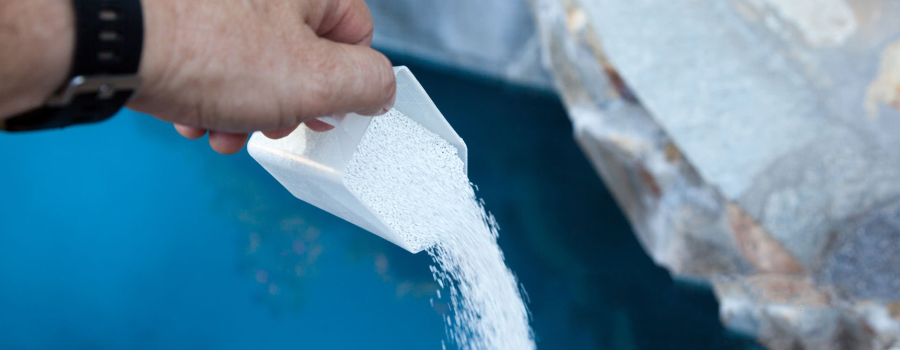 Dissolve SDIC particles in a bucket of water in advance and then evenly distribute them around the swimming pool.
