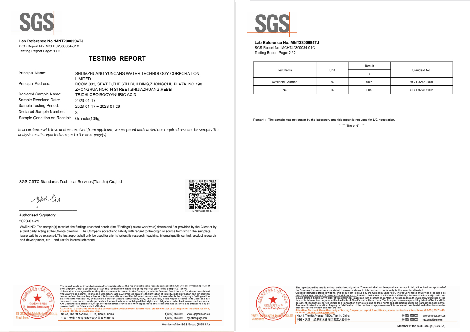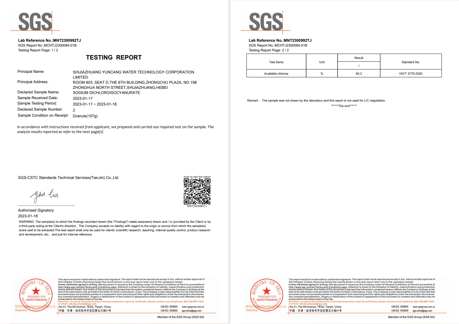 SGS Testing Report SODIUM DICHLOROISOCYANURATE DIHYDRATE